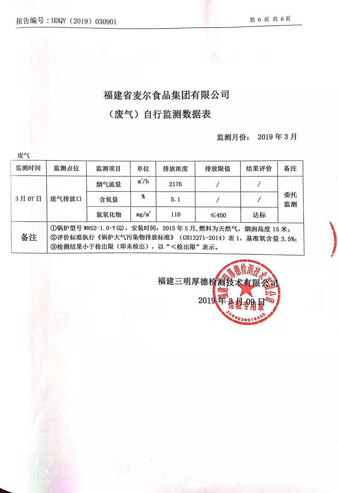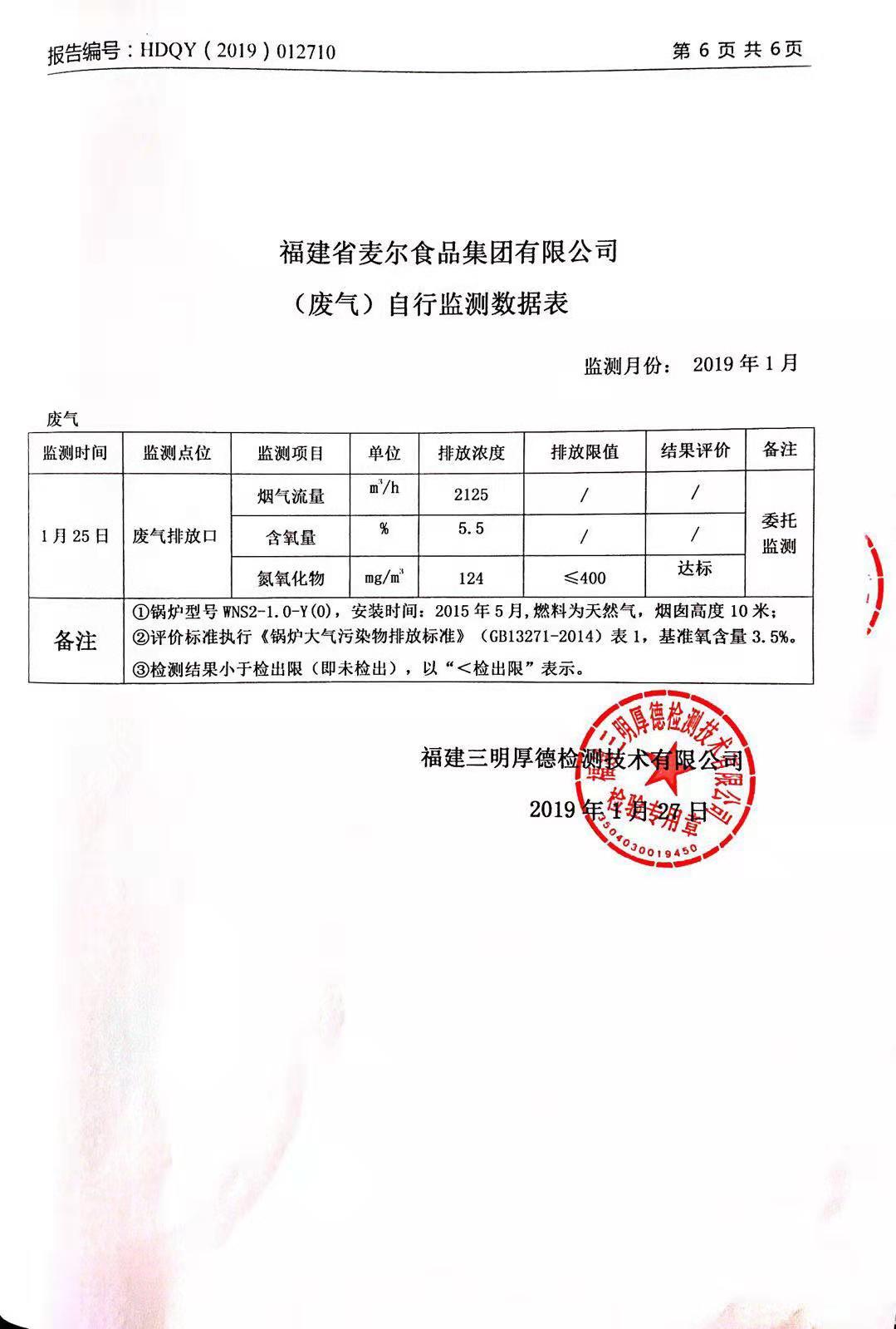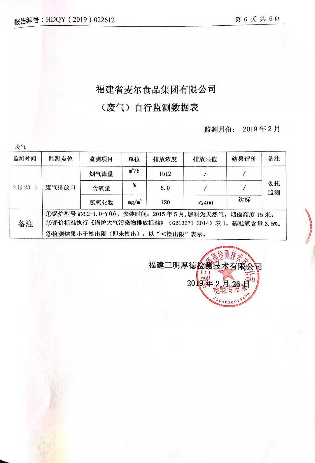 2019年麥爾食品集團-環(huán)境監(jiān)測報告公示