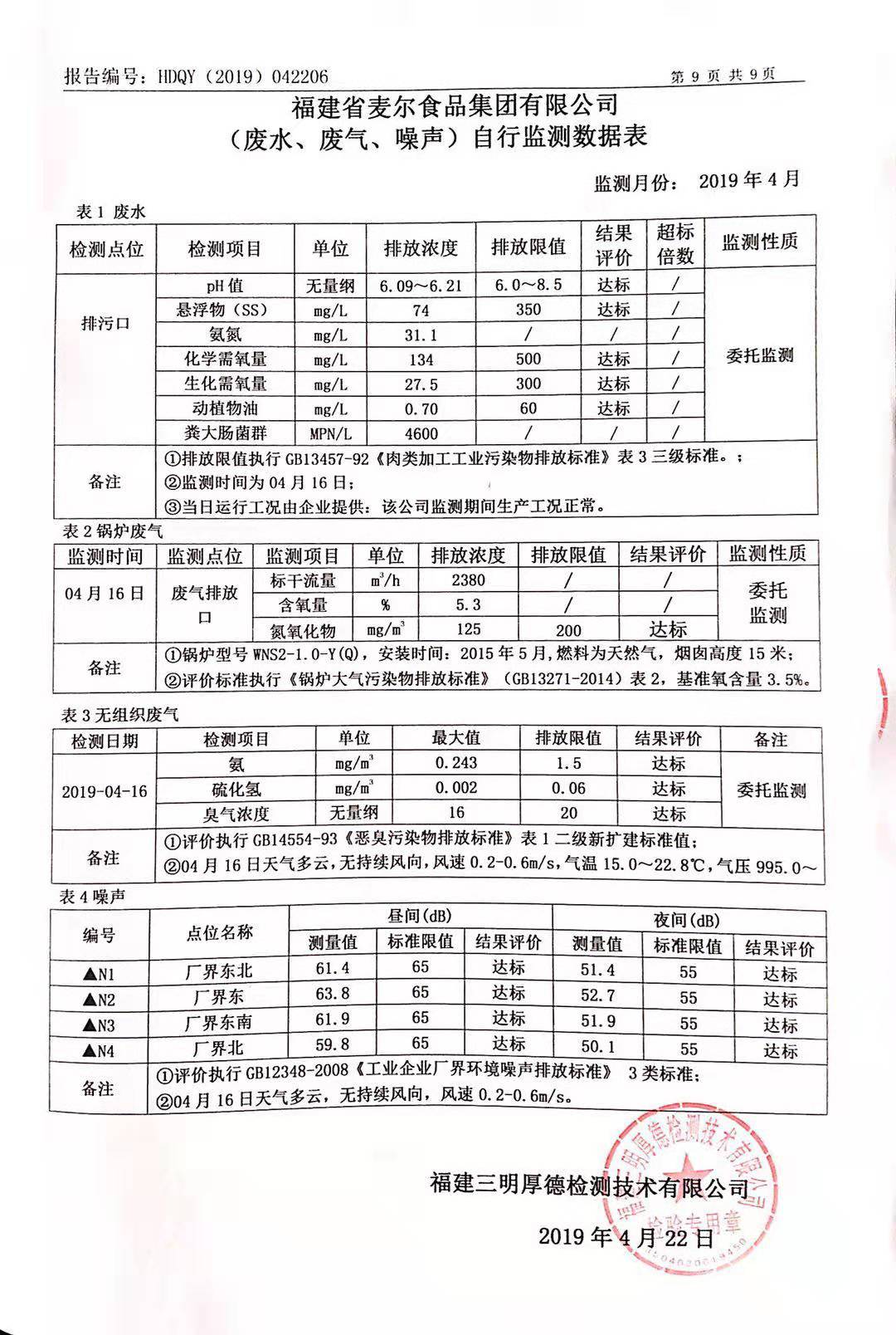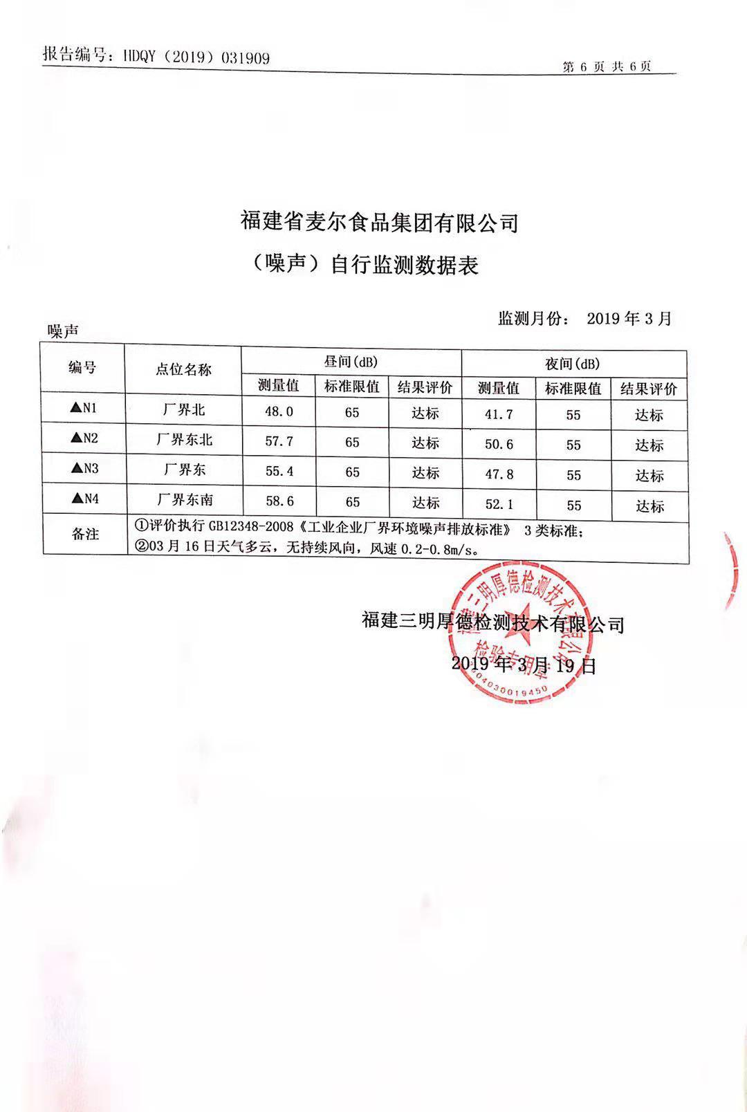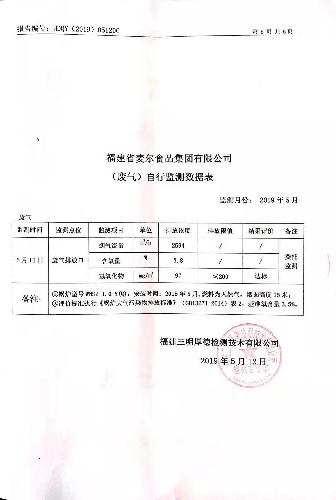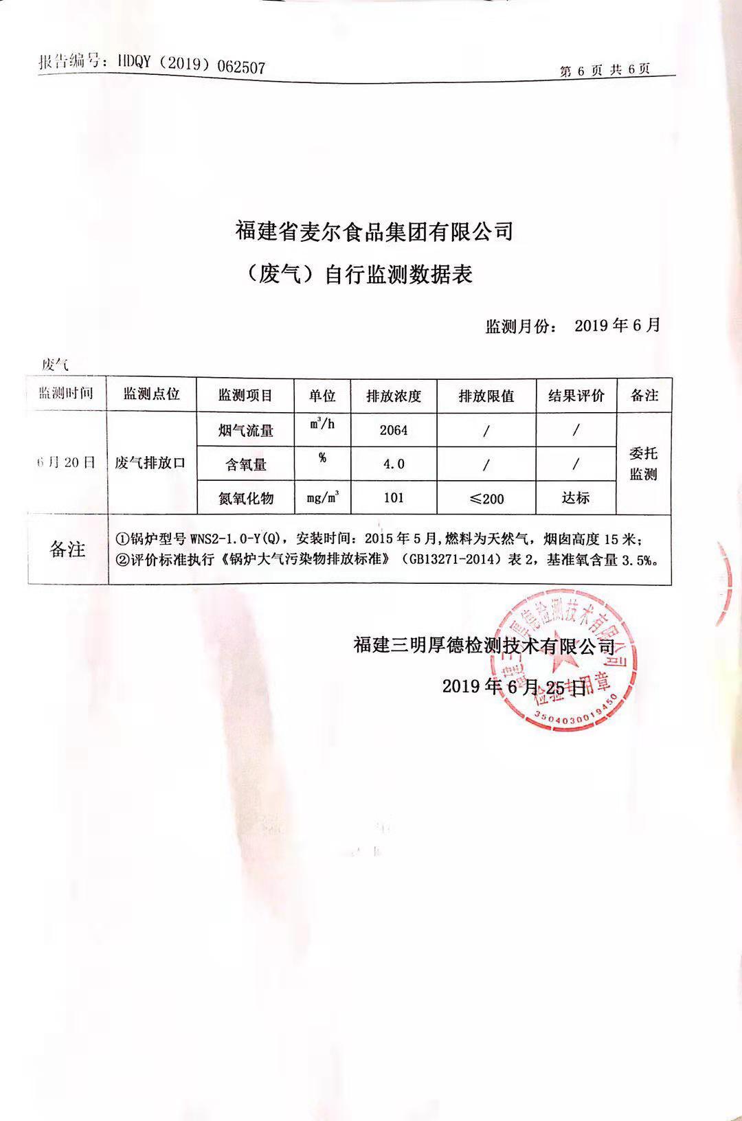 2019年麥爾食品集團-環(huán)境監(jiān)測報告公示